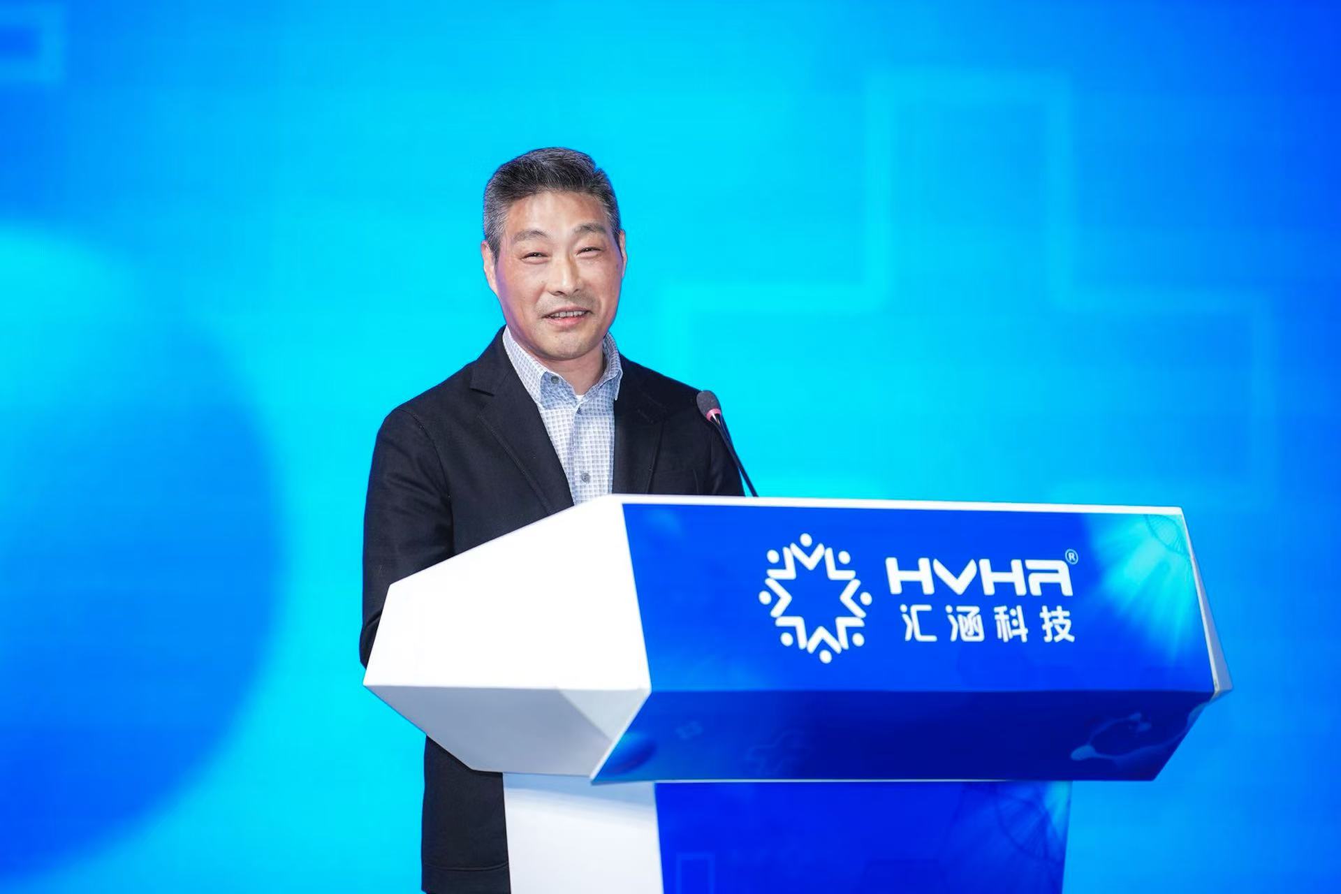 汇涵董事长冯永良致欢迎辞,向长期支持企业发展的政府、专家及合作伙伴致谢,回顾二十载在医用耗材、敷料、手术器械、生物合成等领域的探索之路,表达以科技创新赋能健康、助力产业高质量发展的坚定决心。